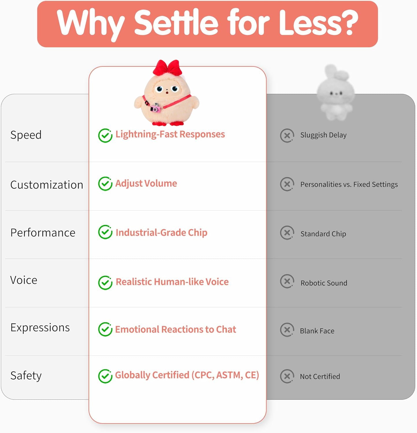 Ob Buchstabieren, erste Matheübungen, Gute-Nacht-Geschichten oder lehrreiche Spiele – es agiert als 24/7 verfügbare Frühförderung. Dank Sprachklontechnologie können Sie zudem die Stimme eines Elternteils oder Großelternteils aufnehmen, um personalisierten Trost zu spenden – für ruhigere Abende und weniger Trennungsangst.